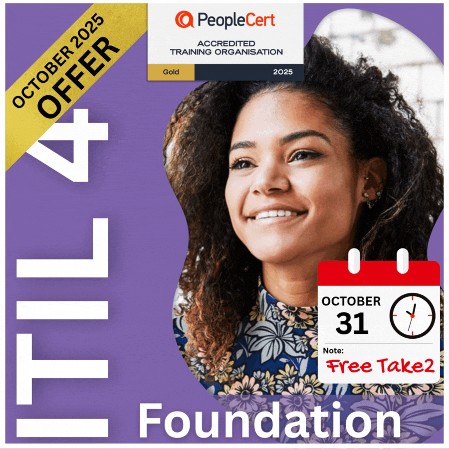 At GogoTraining we do our very best to make your ITIL 4 Foundation Journey affordable and it just got better! This October we are offering 1 exam voucher with 2 Free Bonuses (1-year Access to our PeopleCert Accredited course AND a Free PeopleCert Exam Retake! You get 1-year to prepare and take your exam AND a free exam retake if required for only $484.